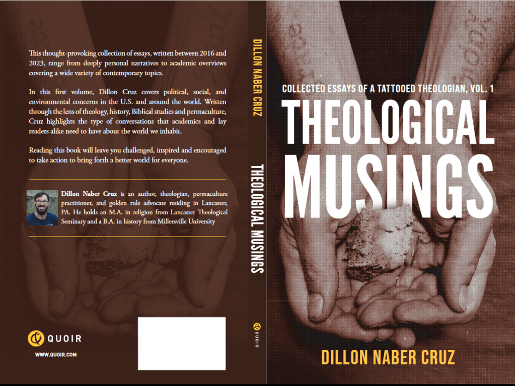 In his book “Theological Musings” author Dillon Cruz identifies his calling to Public Theology which he defines as “the disciplined articulation of Christian Theologies and faith praxis contributing to interdisciplinary and diverse search for a common public good.” There is no doubt this book contributes to the public good. His online blog—The Tattooed Theologian—is committed to diversity of thought and deliberateness of practical application. These books are a select collection of essays from his blog, previously unpublished essays, and from his academic studies . He has arranged the essays by topically and this showcases his wide and deep knowledge of diverse subjects such as Christian Nationalism, Permaculture, Church History, LGBTQIA intersectionality, Pacifism, and Economic Equity. I have followed Dillon Twitter for several years and he impacts me by his powerful observations on the world in which we dwell. These volumes show how much he cares about culture, the planet, and the marginalized. He takes pains to make pointed observations, and then even more carefully backs up his statements. He doesn’t throw out sharp comments; instead he cuts with scalpel-like precision. He takes on the powerful in politics (eg. Former President Trump), the church (eg. The SBC), and even societal movements (eg. Domination Systems). And though Dillon Cruz is thorough, he is not tedious. I recommend these books for any serious thinker who wants to re-process important liberal concepts against an increasingly reactionary neo-conservative mindset in our world.