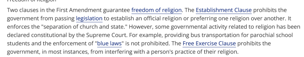 From Cornell University Law School: https://www.law.cornell.edu/constitution/first_amendment